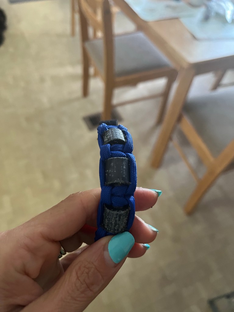 Shark Bracelet – John bought a shark bracelet off of Amazon after hearing about all the shark attacks on the east coast this summer. I’m not sure if the news reports are creating a lot of hype or if there really are more shark sightings and reports this year. I feel like there is always a ramp up of info about sharks during July’s psuedo holiday Shark Week. John was sucked in by all the shark talk and purchased a shark bracelet from the internet prior to our vacation. To be fair, there was a video of a man reeling in a decent size shark on the beach one block from where we stay in Ocean City, MD so I can understand his concern. Apparently the bracelet uses some sort of magnet or stone to keep sharks at a distance. I haven’t read about it myself but I think he said it provides some protection for up to 3ft or a meter in diameter from the person wearing it. I called it social distancing for sharks. My daughter Loren, or Roxy girl as I like to call her because she swims for hours in the ocean, wore it swimming yesterday. We can report no shifts of sharks and we plan to keep it that way!