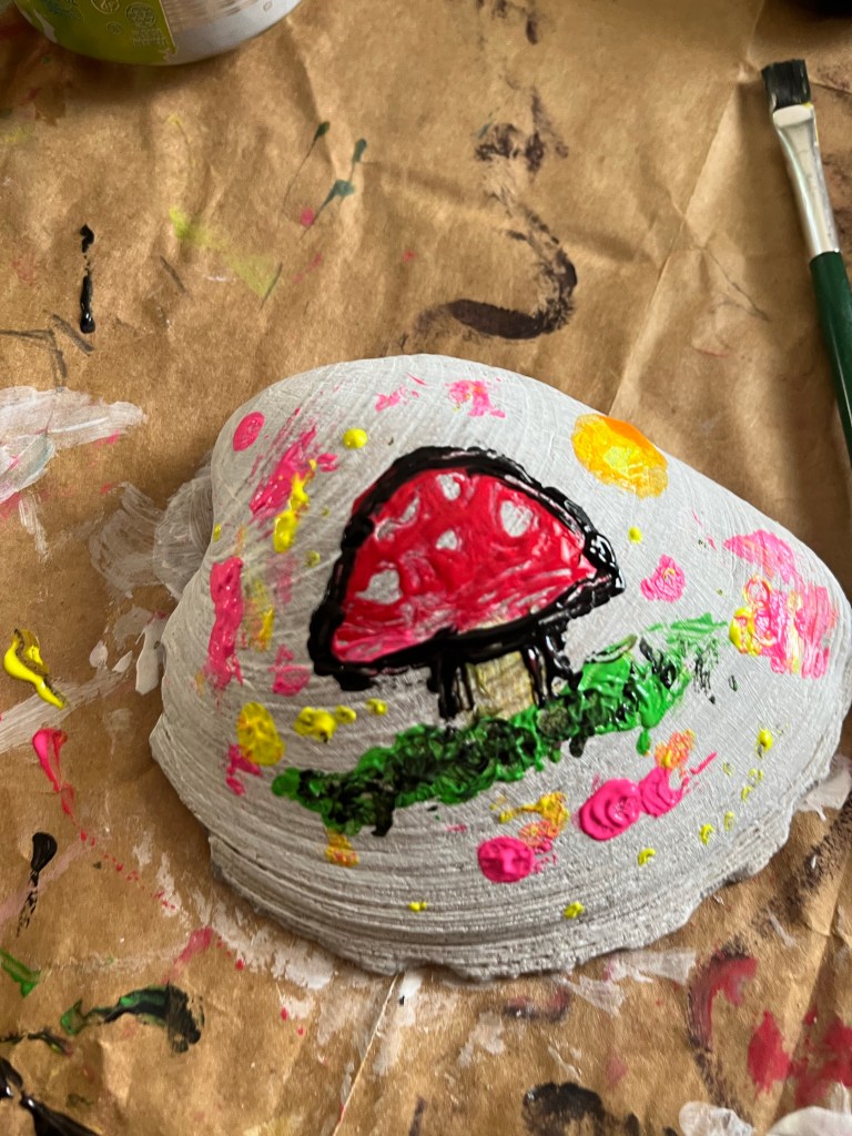 Shell Painting – Shell Painting turned out to be a lovely afternoon activity. We had some leftover paints from a neon rock painting kit Kendall got for her birthday. We couldn’t quite get moving on plans for the day so I just started painting. The kids soon followed. We found some pretty decent looking shells at Tower Beach yesterday so the kids felt some ownership over the shells and which ones they wanted to paint. It was so fun. I like to be creative. I think it’s always a good use of time to let creativity flow and to have supplies on hand to create. I found some inspiration from Tammi Salas, artist, about being a little creative everyday or in small ways and making art even if you aren’t an expert artist.