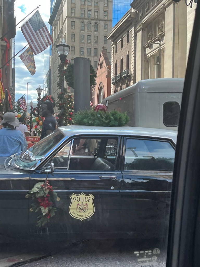 I hit lots of traffic on the way to take the kids to school today but, I think the reason why is pretty cool. Traffic was all backed up at the Inner Harbor because there is a film crew filming the screen adaption of Lady on the Lake from creator Laura Lippmann. The kids and I were very intrigued to see all the extras in mid-20th century garb and old time cars squeezed into the area around Redwood Street downtown. That little area of downtown is like a time capsule to the past because of its architecture from the 19th and 20th century. It also made sense because I was supposed to meet a friend for breakfast on that block at Werner’s and we had to move to a different neighborhood because the restaurant’s social media account said they would be closed today. Anyway, I hate to be late, especially when it has to do with the kids, but at least we got to see something interesting. We also checked it out again (and got caught in more traffic) on the way home in the afternoon. The kids and I talked about checking out the scene when the show finally premiers on AppleTV+.