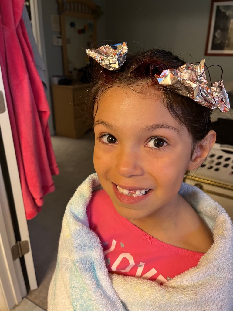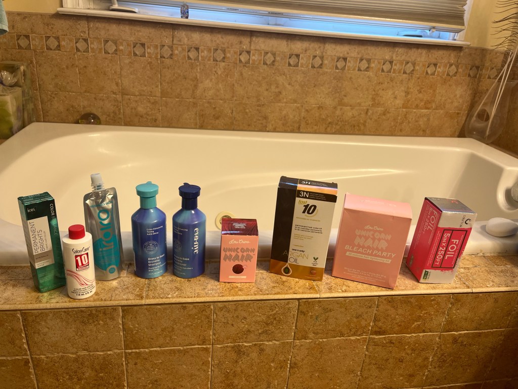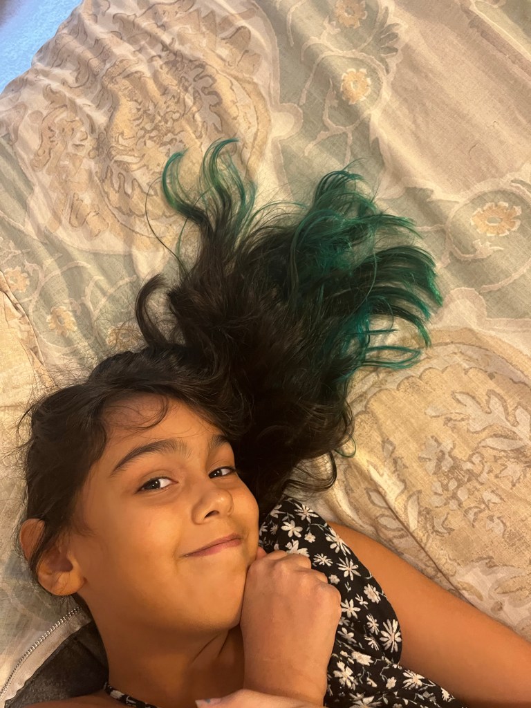 The third time is a charm they say but in this case the third time means I’m becoming a regular stylist for my kids. With Picture Day scheduled for Monday, the kids decided they wanted to color their hair. This is the third time I’ve colored Farah’s hair so I’m starting to learn little tricks and knowing what questions I should be asking when we go to Sally’s Beauty to pick up supplies. I also caved in to the endless whining agreed to color, but not bleach, my youngest daughter Kendall’s hair. She is only seven years old so I’m not crazy about the idea of dyeing her hair or even dealing with her complaints during the process Id applying and rinsing the dye. I figured I would add some “ombré-esque” accents to my hair using leftovers from our Unicorn Bleach Party kit while I was at it. We stopped at a Sally’s Beauty supply shop last night in Baltimore County when leaving a friend’s house and took the opportunity to ask lots of questions from the knowledgeable clerk. I’ve learned something new each time I go to get more products. For instance, I now know that my daughter’s teal color faded out too soon the last time, because I washed her hair afterwards with shampoos containing sulfites which strip away things like product build up and apparently hair dye. Lesson learned!